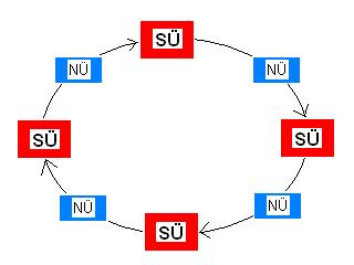 Das Zirkeltraining besteht aus jeweils vier Schwerpunktübungen (SÜ; Rot) und vier